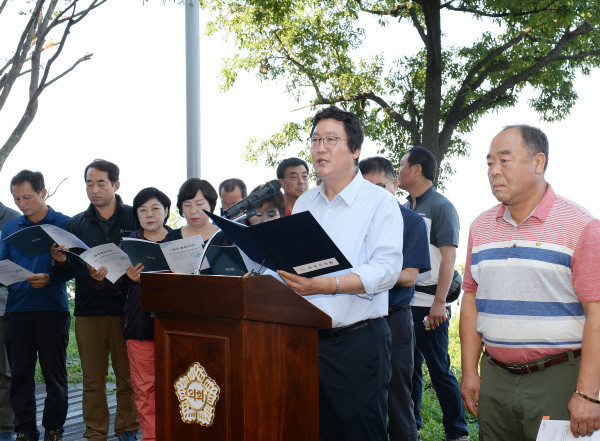 손 의장에 이어 성명서를 낭독한 시민대표 신덕현(탄현면 이장단협의회장)씨는 "평화통일은 온 국민의 염원이자 파주시민의 바람으로 통일경제특구조성과 남북교류협력에 대한 구상들이 반드시 이곳 파주에서 실현되기를 염원한다"고 말했다.