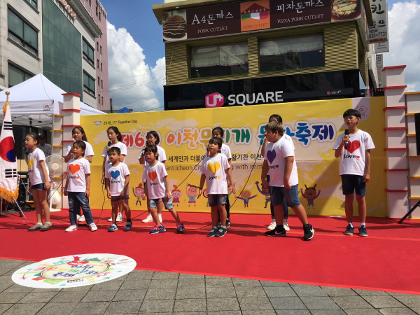 경기 이천시는 ‘세계인의 날’을 기념해 지난 1일 중앙로 문화의 거리 일원에서 ‘제6회 이천 무지개 문화축제’를 개최했다. 사진은 축제에 참여한 국제어린이합창단 단원들이 공연을 진행하고 있는 모습. (사진제공=이천시청)