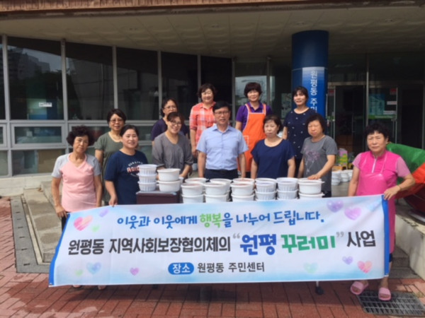 최근 경기 평택시 원평동 지역사회보장협의체와 한국자율총연맹 여성회가 홀몸노인 등 소외계층 70여가정에 김장김치와 계란 장조림 등의 밑반찬 나눔행사를 실시했다. 사진은 나눔행사 전 기념촬영을 하고 있는 행사 참가자들의 모습. (사진제공=평택시청)
