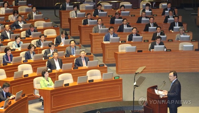 더불어민주당 이해찬 대표가 4일 오전 국회 본회의에서 교섭단체 대표연설을 하고 있다.
