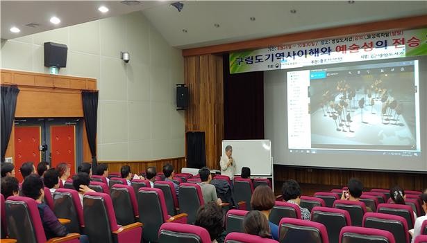 이번에 실시한 인문학 강좌는 김대환 상명대학교 석좌교수를 초청해‘우리나라 도자기 제작과 발전의 이해’주제로 우리나라 최초 시유도기의 역사 및 발전과정과 우리지역 구림도기의 특징과 예술성, 우리나라 금관들의 형상 및 우수성에 대해 2시간여의 열의 있는 강의로 군민들의 많은 박수를 받았다.
