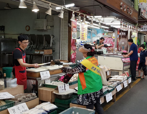 4일 인천 서구가 한국전기안전공사 인천서부지사, 서구 자율방재단, (사)안전모니터봉사단 인천시연합회 서구지회, 안전보안관 등 50여명과 함께 ‘안전점검의 날’ 캠페인을 실시했다. 사진은 시장 상인에게 캠페인 활동을 펼치고 있는 모습. (사진제공=인천 서구청)