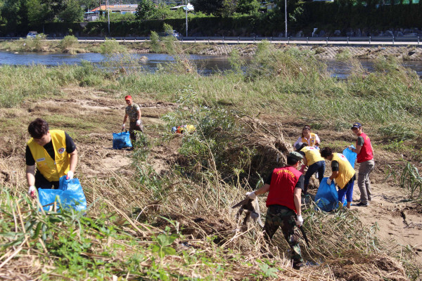 경기 동두천시 지역자율방재단은 5일 태풍과 집중호우로 떠내려온 쓰레기를 수거하는 신천정화활동을 실시했다. 이날 100명의 방재단원이 참석해 소요교를 중심으로 신천변 3km구간에서 상류에서 유입된 폐비닐, 스티로폼, 각종 생활쓰레기 등을 중점적으로 수거했다. (사진제공=동두천시청)