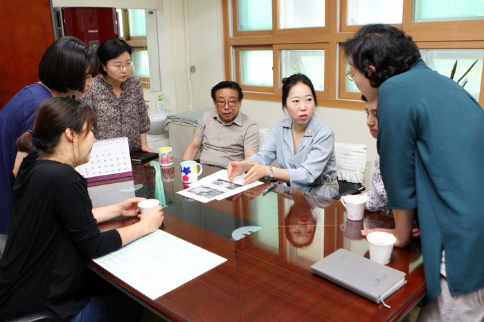 | ▲ 진선미 의원이 학부모들과요양병원 건립에 따른 문제점에 대해 향후 대응책 마련에 의견을 나누고 있다.(사진제공=강동구의회) | ||