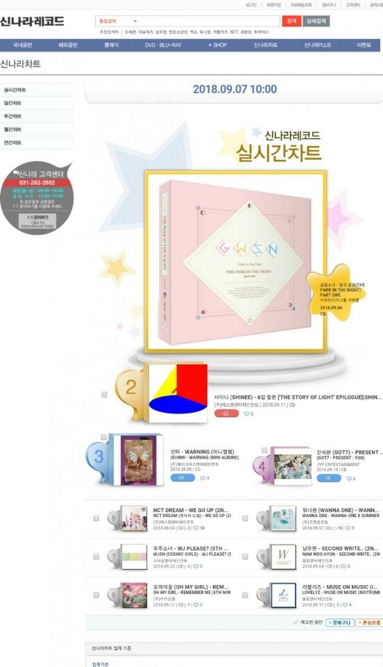 공원소녀의 첫 번째 앨범 ‘밤의 공원 part one(THE PARK IN THE NIGHT part one)’은 7일 오전 10시 기준 온라인 음반사이트 신나라레코드 실시간 음반 판매 차트에서 1위를 차지했다.
