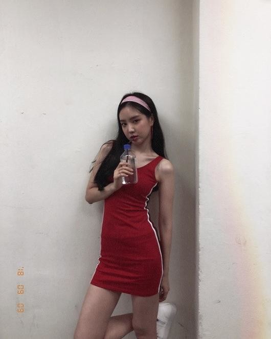 사진 속 손나은은 빨간색 민소매 원피스를 입고 있는 모습이다. 한 손에 물을 든 채 포즈를 취하고 있는 손나은은 원피스 위로 드러난 군살 하나 없는 몸매로 시선을 사로잡는다.