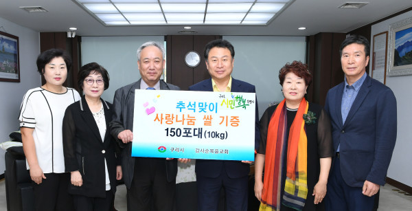 사랑의 쌀 기탁을 위해 시청에 방문한 감사순복음교회 장요한 장로와 황복순 전 구리시의회 부의장 등은 “이번 기회를 통해 주위의 어려운 이웃들의 가정에 삶의 희망과 지역의 따듯한 정을 나눌 수 있게 돼 무척 기쁘다”면서 “앞으로도 저소득 장애인 등의 소외계층과 더불어 사는 사회를 위해 노력하는 교회가 되겠다”고 밝혔다.
