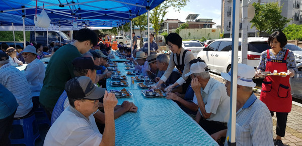노인들에 ‘행복밥차’ 대접