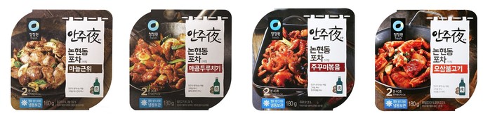 올 1월에는 '마늘근위', '매콤두루치기', '주꾸미볶음', '오삼불고기' 등 신제품을 출시하고 라인업을 지속적으로 확장했다. ‘마늘근위’는 국내산 닭근위에 생마늘, 버터를 넣고 볶아 근위의 쫄깃한 식감과 마늘, 버터의 향긋한 풍미가 잘 어우러진 맛이 특징이다. ‘매콤두루치기’는 전문점의 노하우 그대로 돼지고기를 저온에서 숙성하여 솥에서 양파, 파를 넣고 볶아 담백하고 부드러운 돼지고기 두루치기를 즐길 수 있도록 했다. ‘주꾸미볶음’은 고온에서 단시간 조리해 쫄깃한 식감을 살린 주꾸미와 청정원 비법소스가 어우러져 맛있게 매콤한 맛이 일품이며, ‘오삼불고기’는 싱싱한 오징어와 고소한 삼겹살이 좋은 궁합을 이룬다. 이밖에 ‘돼지두루치기’, ‘직화불막창’, ‘직화무뼈닭발’ 등 다양한 한식 안주류를 선보이고 있다.