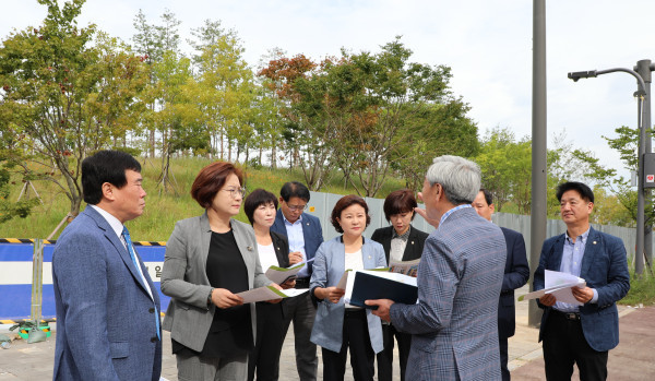 서울 강서구의회 예산결산특별위원회는 ‘2018년도 제1회 세입·세출 추가경정예산안’에 대한 심사를 위해 지난 14일 마곡지구 K타워 앞 현장을 방문해 소관부서인 강서구청 건설관리과 관계자로부터 추경 관련 현안을 설명 받았다. 사진은 신낙형 예결특위 위원장 등 의원들이 설명을 듣는 모습. (사진제공=강서구의회)