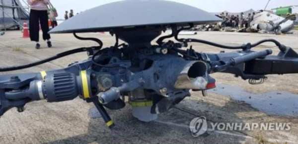 | ▲ 지난 7월18일 경북 포항시 남구 포항공항 활주로에 추락한 해병대 상륙기동 헬기 ‘마린온’의 메인 로터(회전날개)가 부서진 채 놓여있다.(사진제공=연합뉴스) | ||