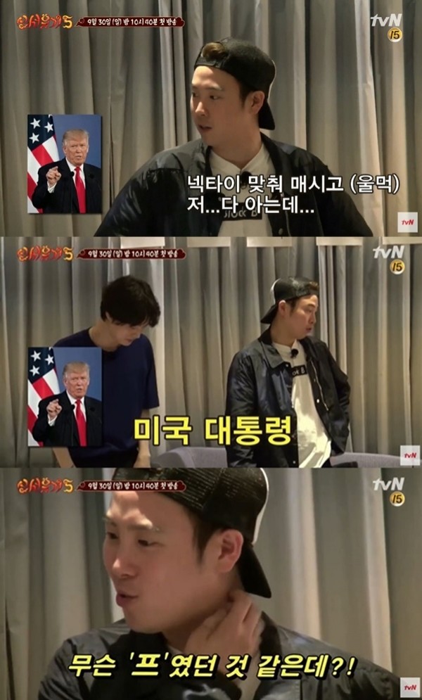 그는 “저분 문재인 대통령이랑 넥타이 맞춰 매시고 저 다 아는데..”라며 선뜻 이름을 떠올리지 못했다. 이에 멤버들은 “누가 뭐라 그랬어?”라며 폭소했고, 제작진 역시 시간은 무제한으로 줄 테니 맞춰보라며 기회를 줬다.