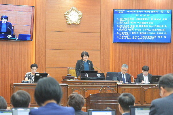 | ▲ 제282회 정례회 제2차 본회의가 진행 중인 모습.(사진제공=동작구의회) | ||