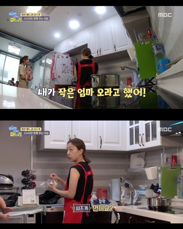 이날 방송에서 시즈카는 아침식사를 꼭 먹어야한다는 시누이를 위해 아침 일찍부터 아이를 업은 채 장을 보러 나섰다.