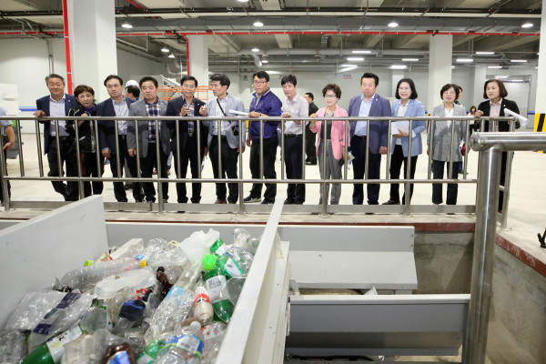 | ▲ 현장점검을 위해 구로구 자원 순환센터를 방문한 행정기획위원회가 관계자로부터 시설에 대한 설명을 듣고 있다. (사진제공=구로구의회) | ||