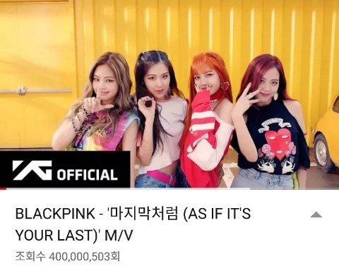 블랙핑크의 ‘마지막처럼’ 뮤직비디오가 K팝 걸그룹 사상 최단 기간 안에 4억뷰를 돌파하는 기록을 세웠다.