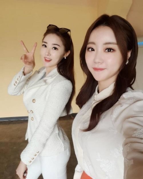 공개된 사진 속에는 황미나와 허영지의 그의 친언니로 알려진 허송연 기상캐스터가 함께 카메라를 향해 포즈를 취하고 있는 모습이 담겨있다.