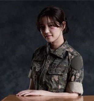 사진 속 이유비는 머리를 올리고 군복을 입고 앉아있다. 군복을 입은 이유비의 모습은 아름답다. 군복도 막을 수 없는 미모를 자랑한다.