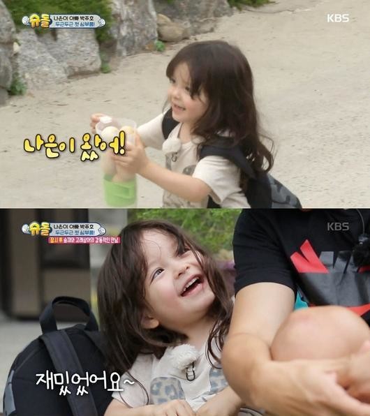 나은이는 꼬물꼬물 작은 손으로 최선을 다해 달걀을 받아 돌아오던 중 아빠를 발견하고 환한 미소를 지으며 달려갔다.