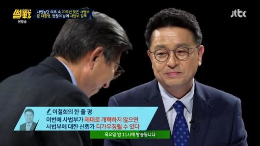 사법농단 의혹에 대한 검찰 수사 전반과 개혁 분위기에 대해 이철희 더불어민주당 의원은 "이번에 사법부가 제대로 개혁하지 않으면 사법부에 대한 신뢰가 '디가우징' 될 수도 있다"고 한 줄 평을 내놓으며 사법부가 확 변화되기를 촉구했다.