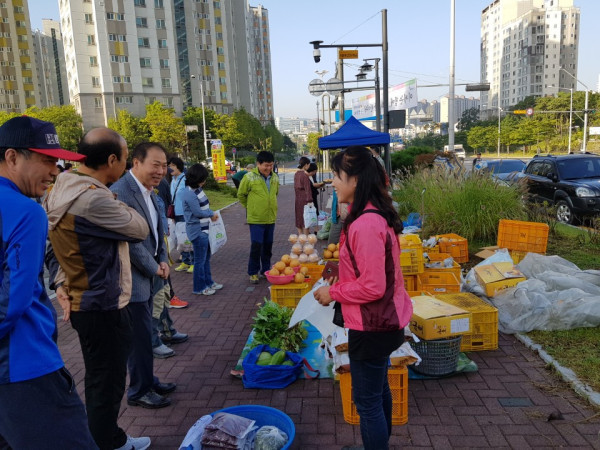 경기 김포시 장영근 부시장은 지난 23일 추석 연휴를 앞두고 김포시 농업인 새벽시장을 방문해 농업인을 격려하는 등 현장행정을 실시했다. 이날 장 부시장은 1시간 동안 농민들의 의견을 현장에서 청취하고 농산물을 직접 구매하는 등 새벽시장의 운영실태 등을 직접 점검했다. 사진은 장 부시장이 농업인들과 이야기를 나누고 있는 모습. (사진제공=김포시청)