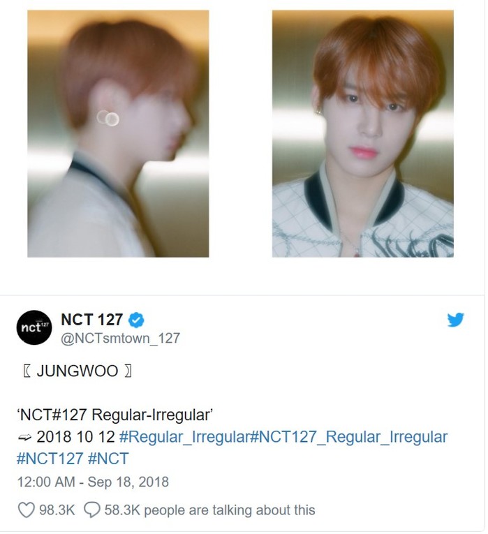 NCT 127는 지난 17일 소셜미디어를 통해 새 멤버 정우의 입성소식을 알렸으며, 동시에 오는 10월 12일 발매될 첫 정규앨범 ‘Regular-Irregular’에 대한 소식도 전했다.