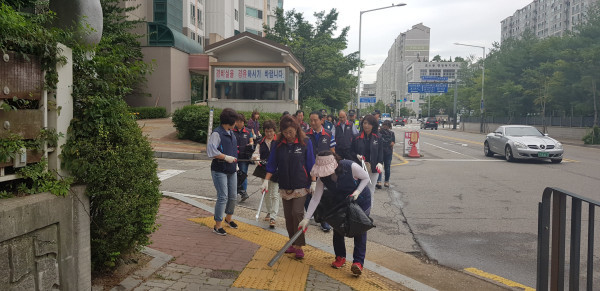 경기 안산시 호수동 통장협의회는 최근 신도시 상가 일대에서 회원 10여명이 참석한 가운데 쾌적하고 살기 좋은 환경조성을 위한 국토대청결 운동을 실시했다. 사진은 참여자들이 쓰레기를 수거하는 모습. (사진제공=안산시청)