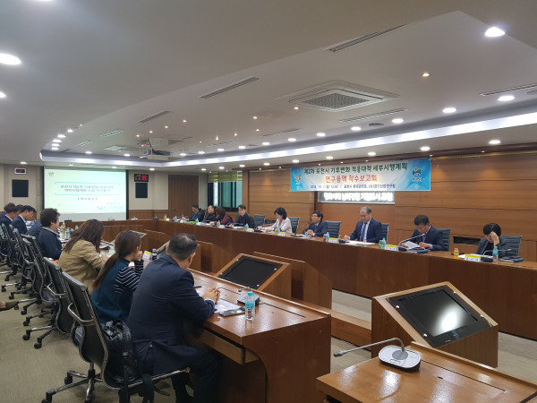 경기 포천시가 2014년에 수립한 ‘제1차 기후변화 적응대책 세부시행계획’이 종료됨에 따라 지난 1일 ‘제2차 계획 수립을 위한 연구용역 착수보고회’를 개최했다. 사진은 용역 착수보고회가 진행 중인 모습. (사진제공=포천시청)