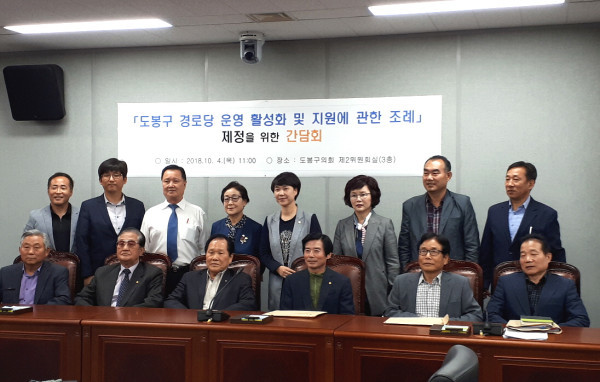 이날 간담회에 참석한 고두중 대한노인회 도봉구지회장을 비롯한 임원진들은 경로당 운영 활성화 조례 발의를 반기는 한편 ‘지회지원에 관한 조례’ 제정도 이뤄져야 한다고 피력했다.