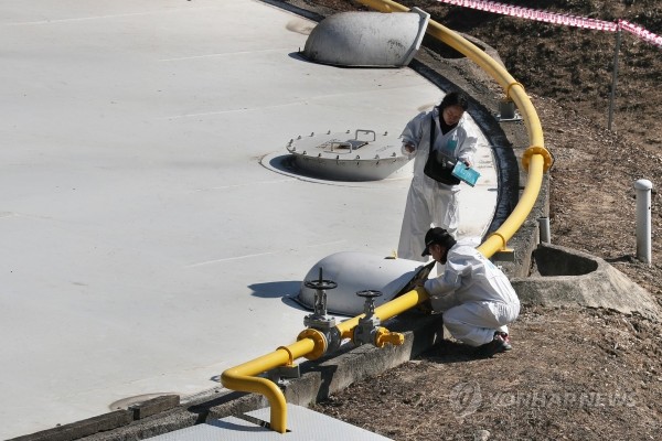 | ▲ 11일 오전 경기 고양시 덕양구 화전동 대한송유관공사 경인지사 저유소에서 화재 합동 감식팀이 유증 환기구를 조사하고 있다.(사진제공=연합뉴스) | ||