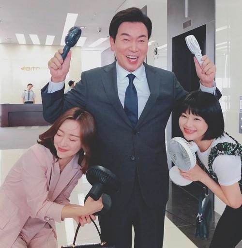 사진 속 홍수아, 김일우, 이영아는 '끝까지 사랑' 촬영 현장에서 선풍기를 들고 포즈를 취하고 있다. 특히 이들의 밝은 미소에서 화기애애한 현장 분위기를 짐작할 수 있다.