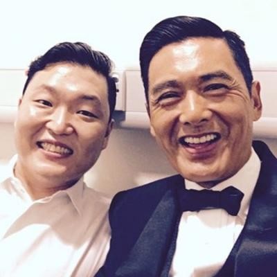 싸이는 과거 자신의 트위터에 "윤발 형님 공식석상에서 첫 춤이었다네요ㅋㅋㅋ"라는 글과 함께 사진 한 장을 게재했다. 이 사진은 홍콩 아시아 월드 엑스포에서 진행된 '2015 Mnet Asian Music Awards'에서 촬영한 것으로 알려졌다.