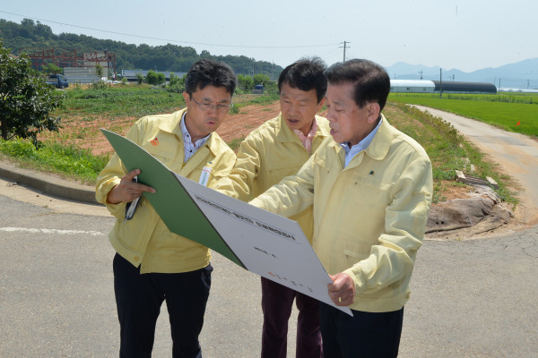 | ▲ 주요도로사업지를 점검하고있는 유천호 군수(오른쪽). (사진제공=인천 강화군청) | ||