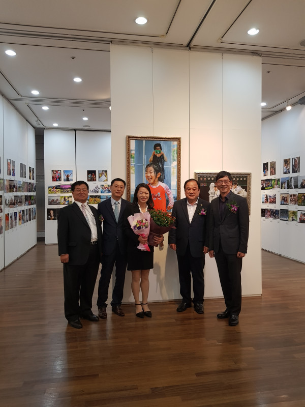 15일 광진구 자양동 소재 나루아트센터에서 ‘제20회 전국 아름다운 미소 사진전’ 개막식이 열렸다. 사진은 시상식 후 박대우 부구청장(맨 오른쪽) 및 금상 수상자 김숙영씨(가운데), 고양석 구의장(오른쪽 두 번째) 등이 함께 김씨 작품 ‘해맑은미소’ 앞에서 기념촬영을 하는 모습. (사진제공=광진구청)
