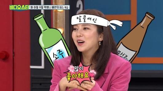 "소맥으로는 어느 정도냐, 30잔?"이라는 MC들의 물음에 손담비는 "그 정도"라고 수줍게 웃어 보였다.