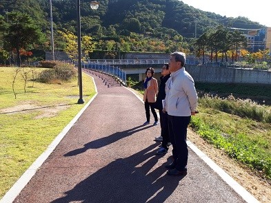 이날 장 구청장은 현동 주민들이 많이 찾고 있은 우산천 일대를 둘러보며 산책로 이상여부, 시설물 안전여부 등을 점검하고 주민들이 이용하고 있는 만큼 수시로 점검하여 안전사고 예방에 만전을 기해 달라고 관계 공무원에게 지시했다.