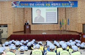 창녕 나라사랑 빛벌 체험학교(명예학교장 한정우)가 지난 18일 영산중학생 등 75명을 대상으로 제5870부대에서 2018년도 제1기 입교식을 가졌다.