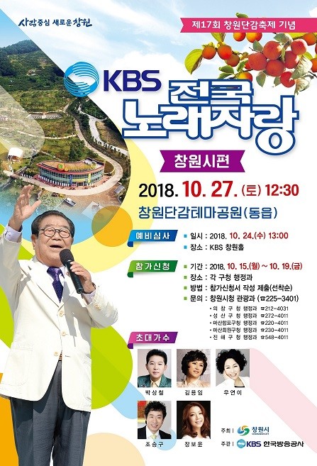 참가자들은 오는 24일 KBS창원홀에서 예심을 치른다. 예심에서는 무반주로 1차 심사를 거치고, 이를 통과한 40~50팀이 노래방 반주에 맞춰 2차 심사를 받는다. 2차 예심까지 모두 통과한 15팀의 참가자가 오는 27일 창원단감테마공원에서 열리는 본 녹화에 참여하게 된다. 본 녹화는 낮 12시 30분부터 시작되며 국민MC 송해의 진행 아래 박상철, 김용임, 우연이, 조승구, 장보윤 등의 초대가수가 출연한다. 제17회 창원단감축제를 맞아 단감 판매 및 시식, 공예체험 등 다채로운 부대행사도 펼쳐질 예정이다.