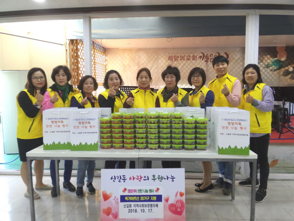 경기 안산시 신길동 지역사회보장협의체는 지난 17일 지역내 생활이 어려운 홀몸노인 20가구를 대상으로 '영양가득 반찬 나눔 행사'를 진행했다. 사진은 참여자들이 기념촬영을 하는 모습. (사진제공=안산시청)