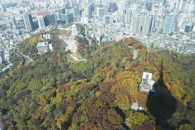 21일 N서울타워 전망대에서 바라본 남산이 가을 색으로 물들어 있다. /연합뉴스