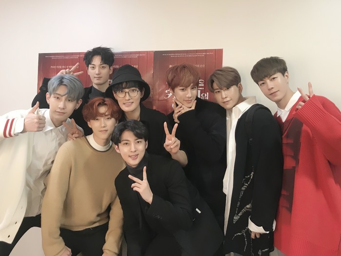 지난 21일 VAV는 공식 SNS를 통해 선배 강타가 출연하고 있는 뮤지컬 ‘매디슨 카운티의 다리’ 관람 인증샷을 공개했다.