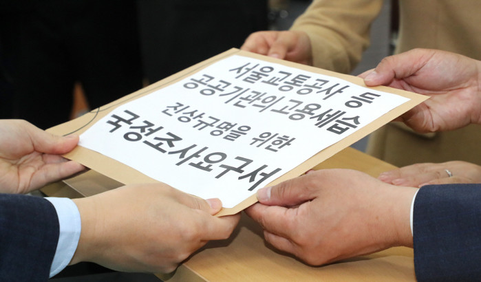 앞서 한국당·바른미래당·평화당은 전날 원내대표 3명 공동 명의로 “서울교통공사의 불공정한 정규직 전환은 취업준비생들의 직업 선택의 권리를 박탈시킨 것은 물론 국민의 안전을 담당할 직원 채용에 안전을 실종시킨 일종의 사회악”이라고 국조 필요성을 강조하면서 국회 의안과에 ‘서울교통공사 등 공공기관의 고용세습 진상규명을 위한 국조 요구서’를 제출한 바 있다.