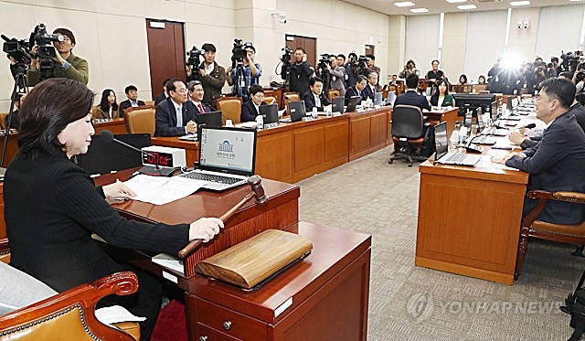 24일 오전 국회에서 열린 정치개혁특위 첫 전체회의에서 심상정 위원장이 의사봉을 두드리고 있다.