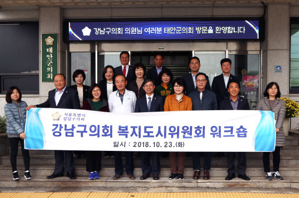 이날 최남일 복지도시위원장을 비롯한 강남구 의원들은 2007년 태안 원유유출 사고시 주민들과 자원봉사자들의 협력으로 10년 만에 유류피해를 극복해 낸 태안군의 재난대응 사례를 경청한 의원들은 봉사자들의 노고에 경의를 표하며 효과적인 재난대응 방안을 고민해보는 등 환경친화정책에 대한 의견을 나눴다. 또 우수한 지역자원개발 사례인 안면도 자연휴양림을 탐방하며 벤치마킹을 했다.