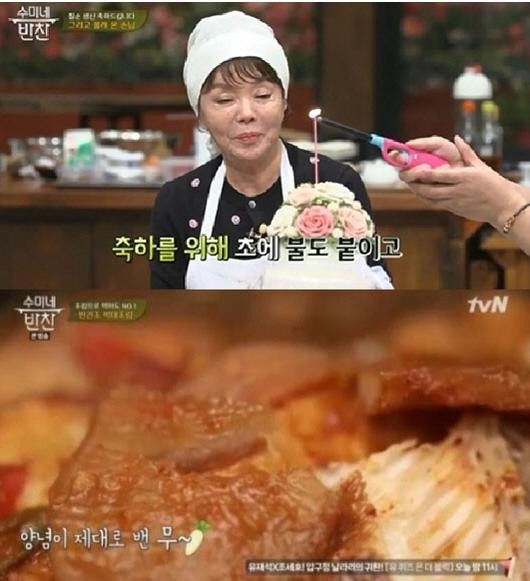 김수미는 “무에 간장이 배어서 까무잡잡해지면 박대와 양념장을 넣어라. 박대는 비린내가 나지 않는 생선이라 매실액이 필요없다”고 말했다.