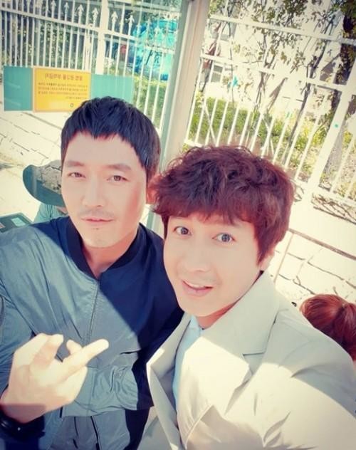 사진 속 김승현은 장혁과 다정한 포즈를 취하며 기념사진을 찍고 있다. 특히 두 사람의 훈훈한 동안 외모가 눈길을 끈다.