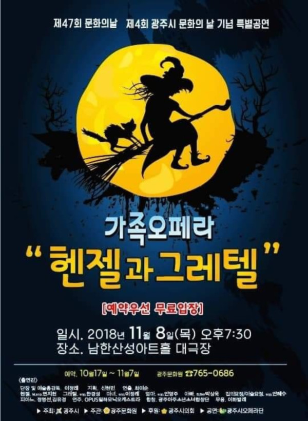 [광주=전용원 기자] 경기 광주문화원이 ‘제4회 광주시 문화의 날’을 기념하기 위해 오는 8일 오후 7시30분 남한산성아트홀 대극장에서 가족오페라 <헨젤과 그레텔> 공연을 개최한다.