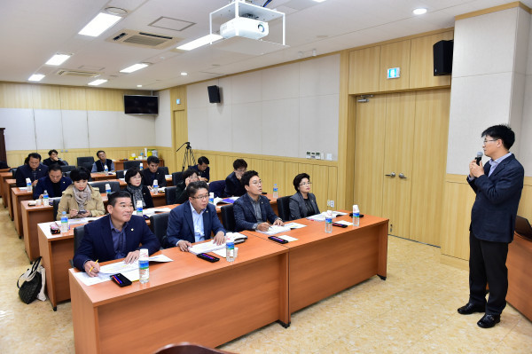 | ▲ 김용석 서울시의원의 교육을 듣고있는 양천구의회 의원들. (사진제공=양천구의회) | ||