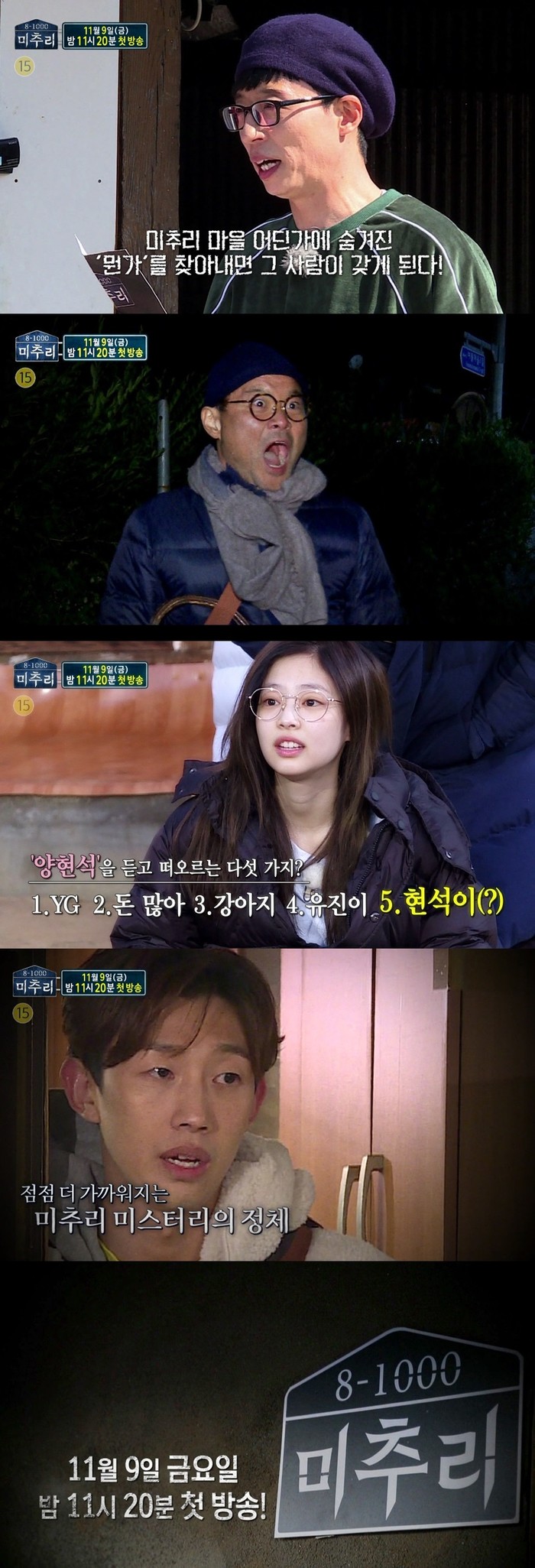 유재석과 함께 ‘예능 대세’로 떠오른 블랙핑크 제니가 전격 합류했고, 예능에서 좀처럼 보기 힘든 배우 김상호와 강기영, 손담비, 임수향, 송강이 출연한다. 믿고 보는 양세형과 장도연도 ‘미추리’를 통해 환상의 호홉을 선보인다. 11월 9일 밤 11시 20분 첫 방송.