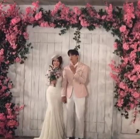 영상 속 그는 흰 웨딩 드레스 차림으로 남자 모델과 포즈를 연출하고 있다.
